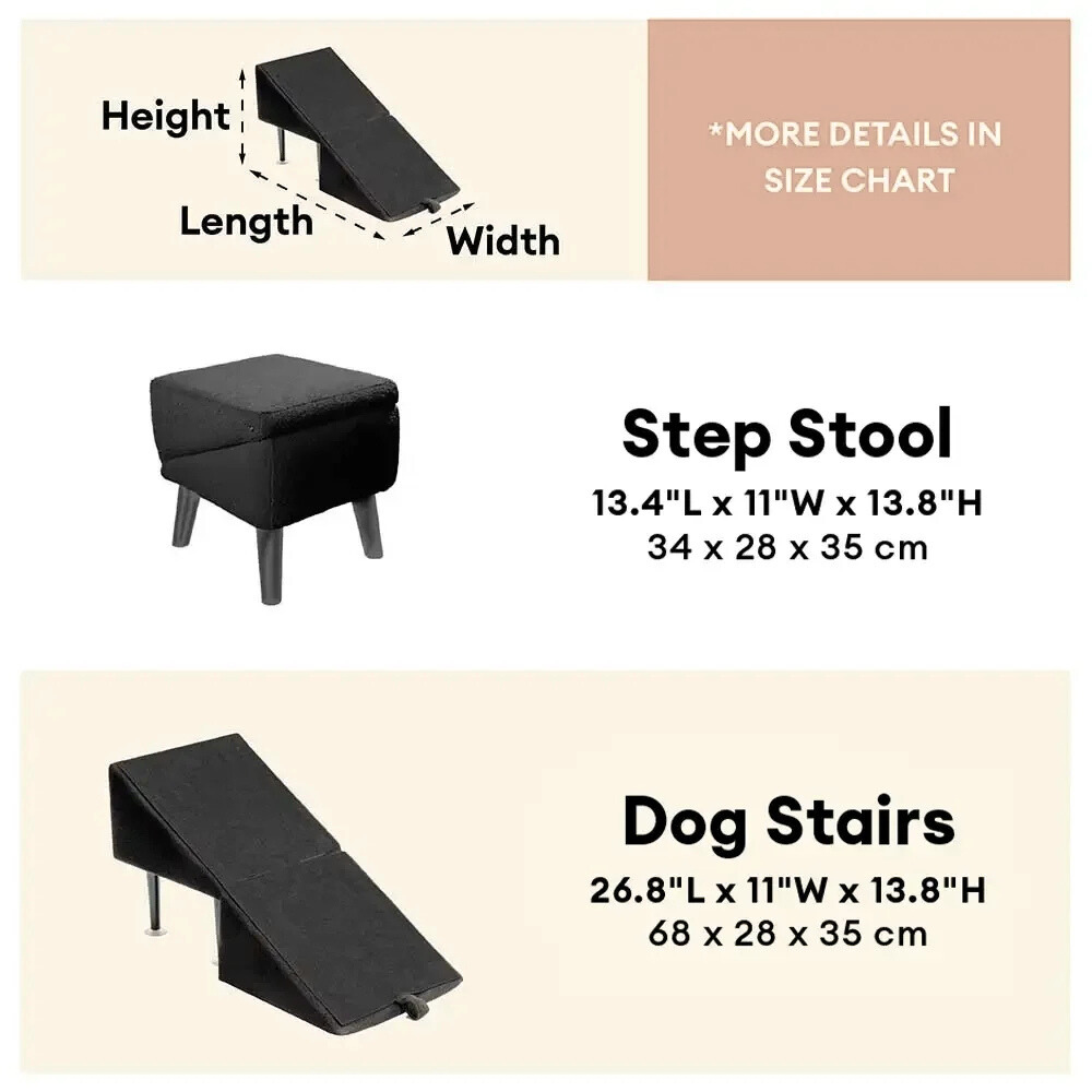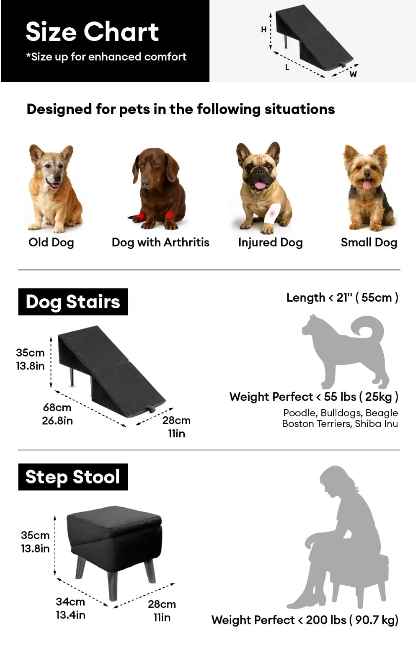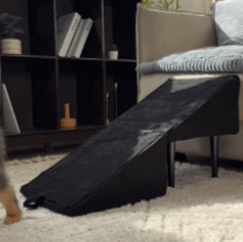 Use it flat as a ramp or fold it into a step stool—designed to support pets of all sizes, including seniors with joint issues or short-legged breeds like corgis and dachshunds. Built with a sturdy frame that holds up to 200 lbs (≈ 90.7 kg), it provides reliable support for small to large dogs alike.
