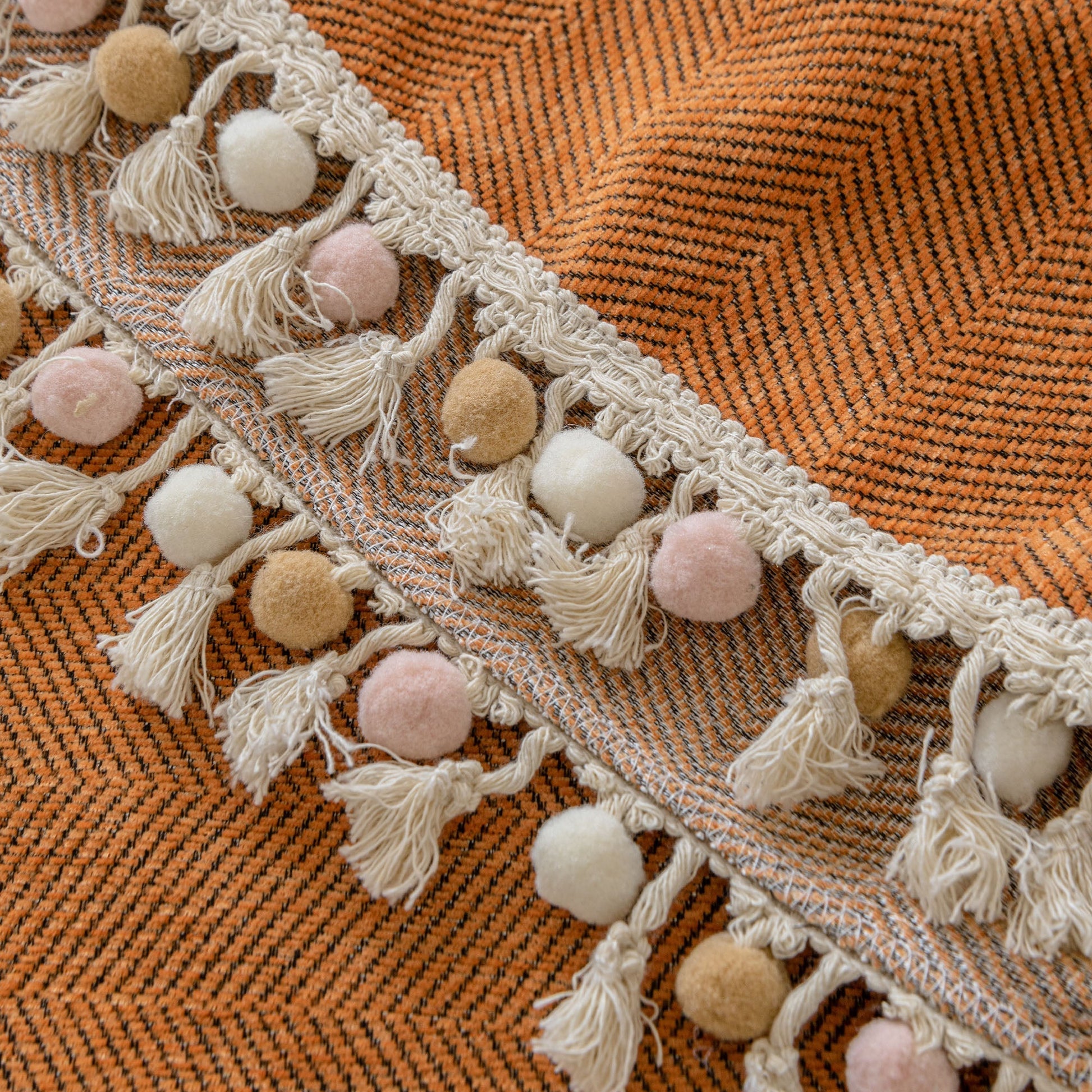 • Subtle herringbone pattern with stylish tassels for a boho-inspired look.