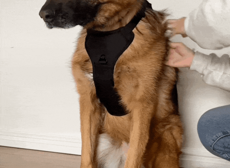 Unclip the buckles, place the harness over your dog’s head, fasten the buckles, and adjust the straps once for a snug fit. After that, it goes on and off in seconds.