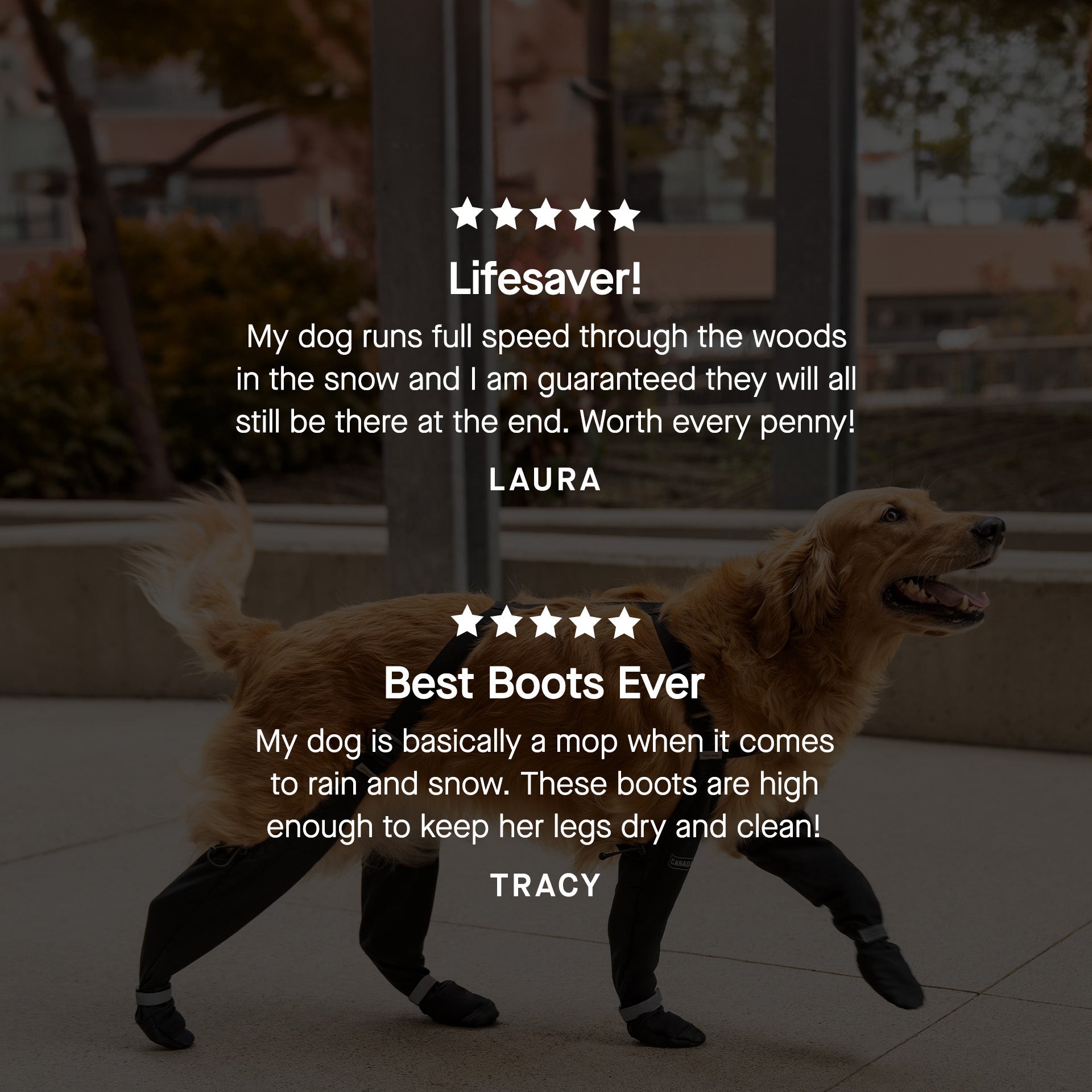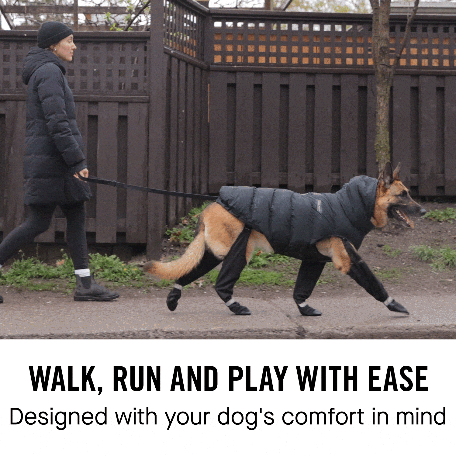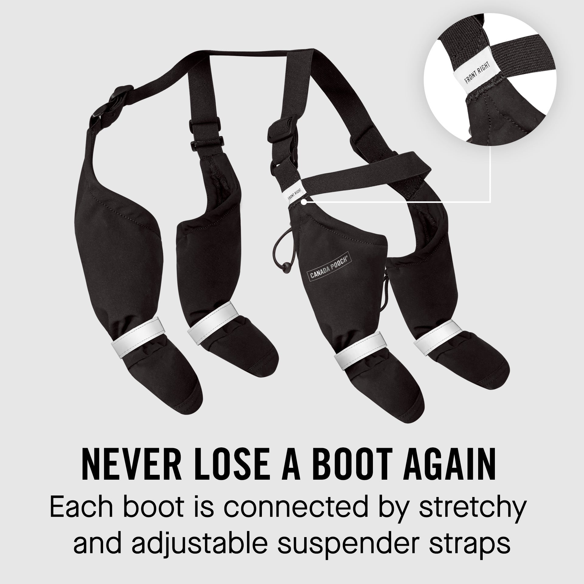 Absolutely. The connected suspender design keeps all four boots securely in place — no more lost boots during walks or runs. The adjustable straps ensure a snug, comfortable fit across your dog’s body.